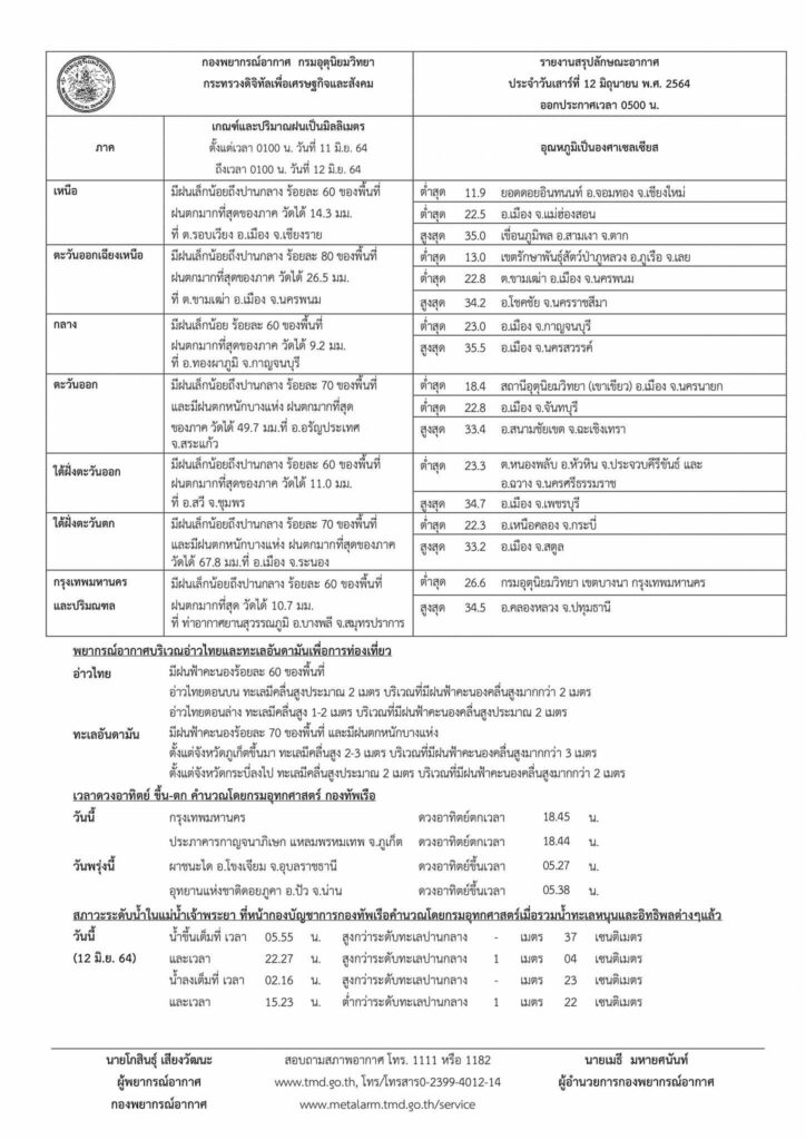 เมื่อวันที่ 8 มิถุนายน กรมอุตุนิยมวิทยา เผยแพร่พยากรณ์อากาศทั่วทั้งประเทศไทย มีความเสี่ยงฝนตกหนักทั่วประเทศ กรุงเทพมหานคร มีฝนตก 40% ของพื้นที่ ภาคตะวันออกเฉียงเหนือมีฝนฟ้าคะนอง 70% ของพื้นที่ ฝนตกหนักถึงหนักมากบางแห่ง