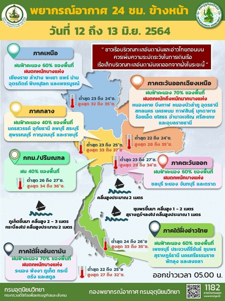 ชาวเรือบริเวณทะเลอันดามันและอ่าวไทยตอนบน ควรเพิ่มความระมัดระวังในการเดินเรือ เรือเล็กควรงดออกจากฝั่งด้านบริเวณอันดามัน ในระยะนี้