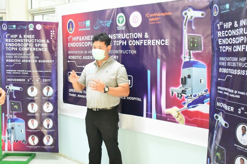 นายแพทย์พิธี วงศ์ยงศิลป์ แพทย์ Orthopedic ผู้เชี่ยวชาญด้านการผ่าตัดเปลี่ยนข้อเข่าและข้อสะโพก (ประจำโรงพยาบาลสมเด็จพระยุพราชท่าบ่อ) กล่าวว่า วันนี้ถือเป็นโอกาสอันดีที่โรงพยาบาลสมเด็จพระยุพราชท่าบ่อ ร่วมกับโรงพยาบาลราชวิถี และ โรงพยาบาลหนองคาย จัดโครงการประชุมประจำปีแผนกศัลยกรรมออโธปิดิกส์ “Innovation In Hip & Knee Reconstruction : Robotic Assisted Surgery” การผ่าตัดเปลี่ยนข้อเข่าและข้อสะโพกเทียมด้วยระบบหุ่นยนต์ช่วยผ่าตัด(Robotic Assisted Surgery) โดยกำหนดดำเนินโครงการฯ ระหว่างวันที่ 3-4 พ.ย. 2564 ณ โรงพยาบาลสมเด็จพระยุพราชท่าบ่อ ซึ่งได้มีการสาธิตการผ่าตัดข้อเข่าเทียมด้วยระบบหุ่นยนต์ช่วยเหลือการผ่าตัด