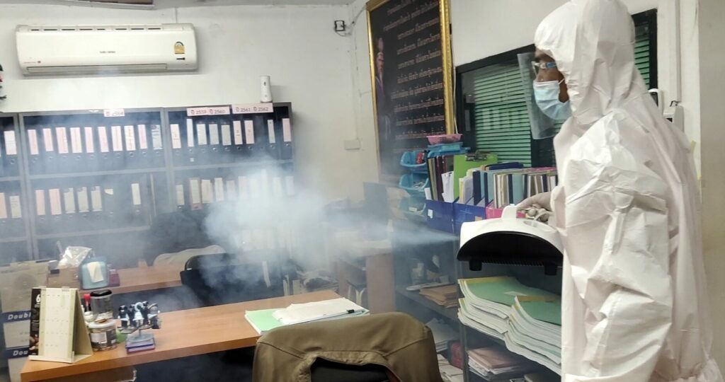เมื่อวันที่ 12 กรกฎาคม ที่ บริเวณโครงการก่อสร้าง สำนักงานชลประทานที่ 6 ได้ดำเนินการฉีดพ่นยาฆ่าเชื้อ เพื่อป้องกันการแพร่ระบาดของไวรัสโควิด- 19 ด้วยเครื่องพ่นละอองฝอยละเอียด ภายในถานที่ทำงานข้าราชการ พนักงาน ลูกจ้าง ภายในสำนักงานโครงการก่อสร้าง สำนักงานชลประทานที่ 6 อ.เมือง จ.ขอนแก่น