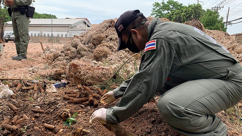 เบื้องต้นเจ้าหน้าที่ EOD ระบุว่า วัตถุต้องสงสัยบริเวณริมคลองดังกล่าวเป็นลูกระเบิดที่ยิงจากเครื่องยิงลูกระเบิด ลย.ค. ขนาด 81 มิลลิเมตร สภาพเก่า แต่สามารถระเบิดได้ ส่วนบริเวณที่ดินว่างเปล่าใกล้กัน ยังตรวจสอบพบว่ามี ปลอกลูกกระสุนปืนยิงต่อสู้อากาศยาน ขนาด 30 มิลลิเมตร สภาพเก่าขึ้นสนิม อีกจำนวนหนึ่ง เจ้าหน้าที่จึงได้ทำการเก็บวัตถุทั้งหมดและนำไปดำเนินการตามขั้นตอนต่อไป