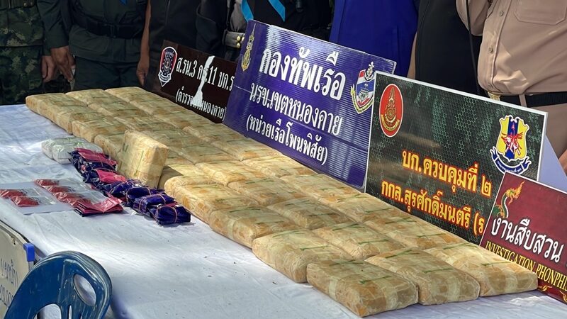 น.อ.ราฆพ เทวะประทีป ผบ.นรข.เขตหนองคาย กล่าวว่า สืบเนื่องจากเจ้าหน้าที่หน่วยเรือโพนพิสัย ได้รับแจ้งว่าจะมีการลักลอบยาเสพติดเข้ามาในประเทศ บริเวณบ้านแดนเมือง หมู่ 3 ต.วัดหลวง อ.โพนพิสัย จึงสั่งการให้วางแผนดักซุ่มจับกุมร่วมกับหน่วยงานที่เกี่ยวข้อง กระทั่งเวลาประมาณ 01.30 น. วันนี้ เจ้าหน้าที่พบเรือต้องสงสัย 1 ลำ แล่นมากลางแม่น้ำโขง มีคนอยู่ในเรือ 2 คน พายเรือเข้ามาจอดบริเวณริมฝั่งแม่น้ำโขงบ้านแดนเมือง