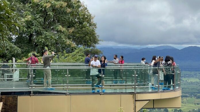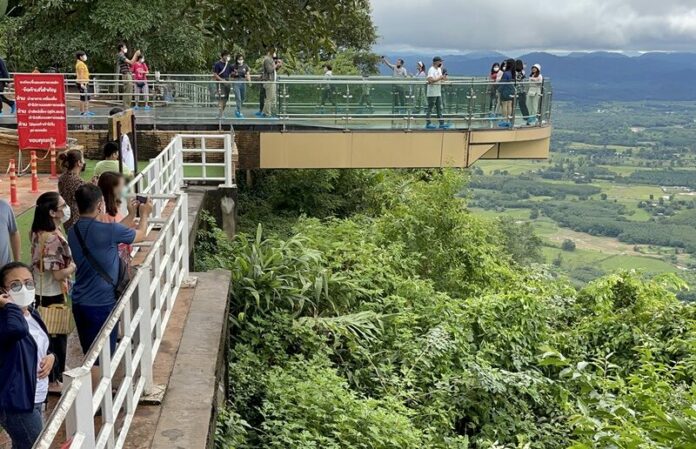นักท่องเที่ยวแน่นวัดผาตากเสื้อ-หนองคาย ชมธรรมชาติบนสกายวอล์ก วิว 2 ฝั่งโขง ท่ามกลางมาตรการป้องกันและสกัดโรคโควิด-19