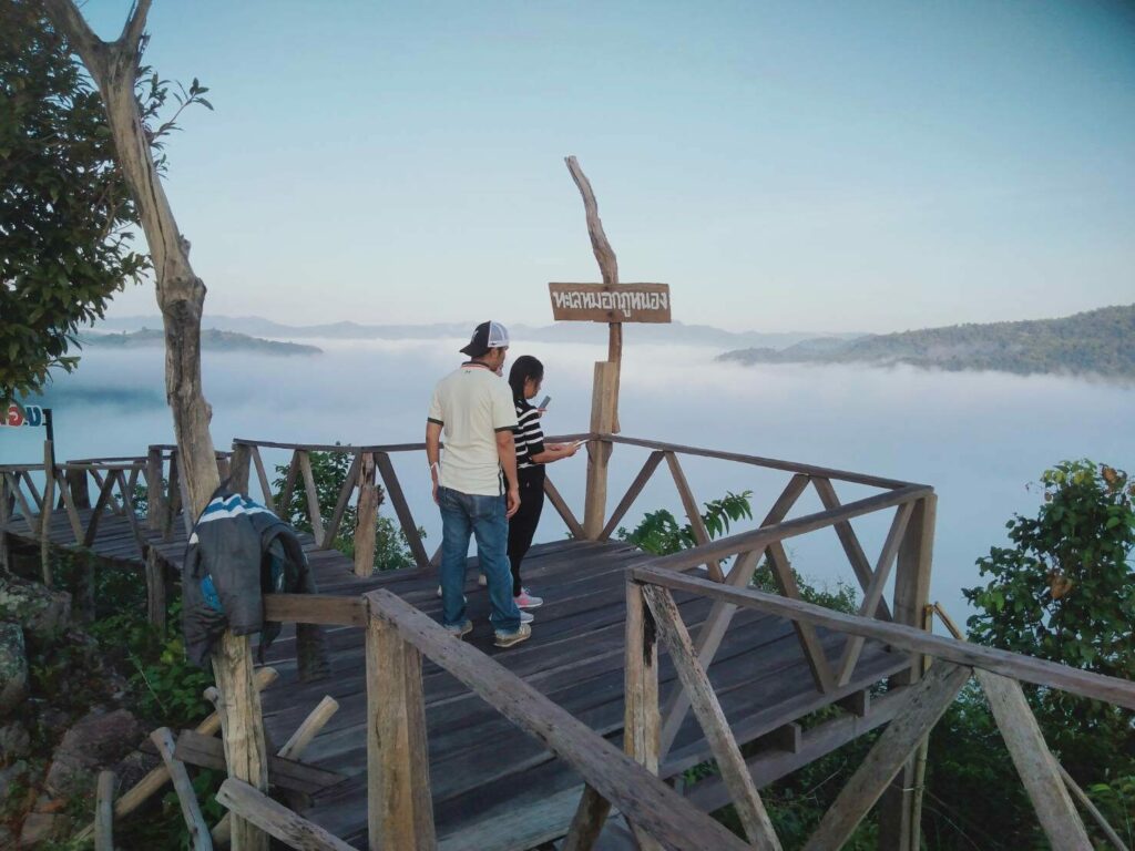 นักท่องเที่ยวที่ขึ้นไปท่องเที่ยวบนภูหนองก็ไม่ผิดหวัง มีทะเลหมอกเกิดขึ้นเหนือลำน้ำโขงสองประเทศไทย-ลาว หนาแน่น สวยงาม และยาวนาน ซึ่งหมอกได้จับตัวกันหนาแน่นและลอยต่ำลงเป็นทะเลหมอกที่สวยงาม นักท่องเที่ยวที่ขึ้นภูหนองได้ขึ้นไปถ่ายภาพที่ระลึกบนสะพานไม้ที่รอบภูสูงที่ยาวที่สุดในจังหวัดหนองคาย ความยาวกว่า 50 เมตร ที่ยื่นออกไปจนได้ใกล้ชิดกับทะเลหมอกที่เกิดขึ้น ก่อนจะส่งภาพที่ถ่ายผ่านโลกโซเชียลต่อไป
