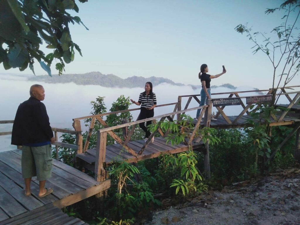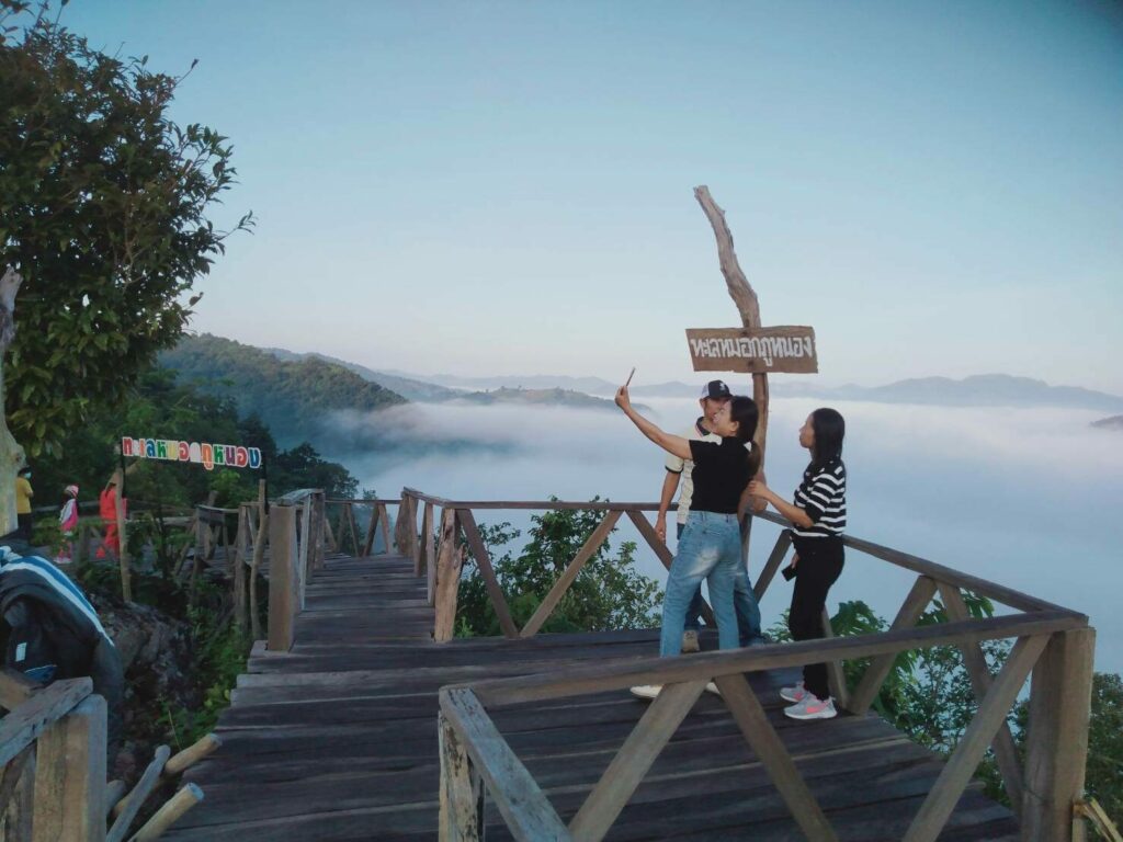 นักท่องเที่ยวที่ขึ้นไปท่องเที่ยวบนภูหนองก็ไม่ผิดหวัง มีทะเลหมอกเกิดขึ้นเหนือลำน้ำโขงสองประเทศไทย-ลาว หนาแน่น สวยงาม และยาวนาน ซึ่งหมอกได้จับตัวกันหนาแน่นและลอยต่ำลงเป็นทะเลหมอกที่สวยงาม นักท่องเที่ยวที่ขึ้นภูหนองได้ขึ้นไปถ่ายภาพที่ระลึกบนสะพานไม้ที่รอบภูสูงที่ยาวที่สุดในจังหวัดหนองคาย ความยาวกว่า 50 เมตร ที่ยื่นออกไปจนได้ใกล้ชิดกับทะเลหมอกที่เกิดขึ้น ก่อนจะส่งภาพที่ถ่ายผ่านโลกโซเชียลต่อไป