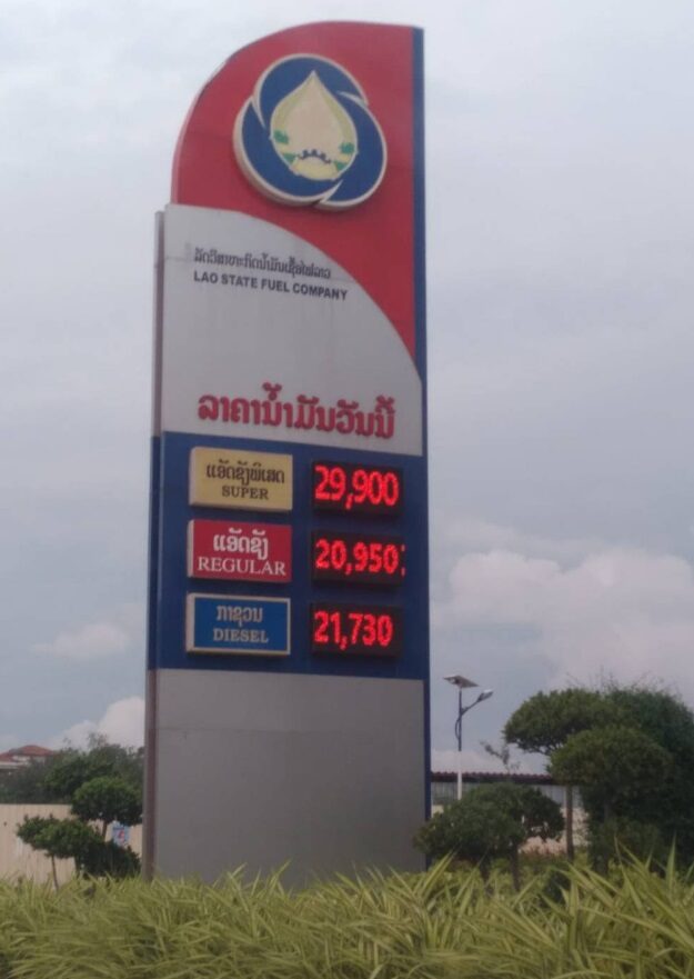 สำหรับราคาจำหน่ายน้ำมันที่ปั๊มน้ำมัน (ปตท.) ที่จังหวัดหนองคาย ดีเซล อยู่ที่ลิตรละ 35.59 บาท, เบนซิน E85 อยู่ที่ราคาลิตรละ 35.99 บาท, เบนซิน E20 อยู่ที่ราคาลิตรละ 41.09 บาท, เบนซิน แก๊สโซฮอล์ 91 อยู่ที่ราคาลิตรละ 41.93 บาท, เบนซิน แก๊สโซฮอล์ 95 อยู่ที่ราคาลิตรละ 42.20 บาท และเบนซิน อยู่ที่ราคาลิตรละ 49.61 บาท ส่วนราคาน้ำมันที่ สปป.ลาว น้ำมันดีเซล อยู่ที่ลิตรละ 21,730 กีบ หรือประมาณ 47.24 บาท, น้ำมันเบนซิน (แก๊สโซฮอล์ 91) ราคาลิตรละ 20,950 กีบ หรือประมาณ 45.54 บาท และน้ำมันเบนซินซุปเปอร์ (แก๊สโซฮอล์ 95) ราคาลิตรละ 29,900 กีบ หรือประมาณ 65 บาท ซึ่งทางรัฐบาล สปป.ลาวเองก็รณรงค์ให้ประชาชนใช้น้ำมันอย่างประหยัด