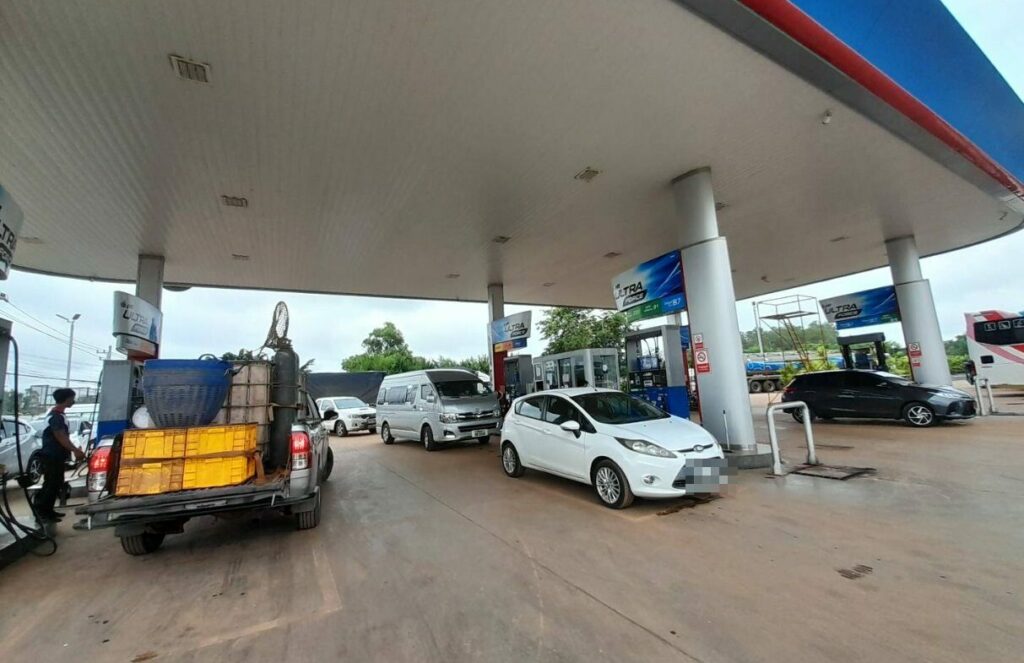 ปั๊มน้ำมันหนองคายคึกคัก บางคนนำแกลลอนมาตุนไว้ ชี้ ราคาถูกกว่าปั๊มลาวเพิ่มอีก