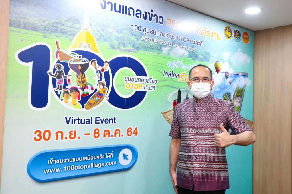 โดยกำหนดจัดงานขึ้นเมื่อ วันที่ 30 กันยายน – 8 ตุลาคม 2564 กรมการพัฒนาชุมชน กระทรวงมหาดไทย จึงได้มีการจัดงานในรูปแบบเสมือนจริง (Virtual Event) โดยมี CONCEPT การจัดงาน “ อยู่ที่นี่ อยู่ที่ไหน ใกล้ไกล เที่ยวได้ทุกที่ ” เพื่อประชาสัมพันธ์ชุมชนท่องเที่ยว OTOP นวัตวิถี รูปแบบออนไลน์ จัดแสดงและจำหน่ายผลิตภัณฑ์ OTOPและบริการด้านการท่องเที่ยวของชุมชนท่องเที่ยวออนไลน์ และส่งเสริมการสร้างรายได้ให้แก่ผู้ประกอบการในชุมชนท่องเที่ยว OTOP นวัตวิถีในรูปแบบเสมือนจริง ผ่านเว็ปไซต์เว็ปไซต์ www.100otopvillage.com โดยประกอบไปด้วยการส่งเสริมองค์ประกอบหลัก 3 ส่วน คือ