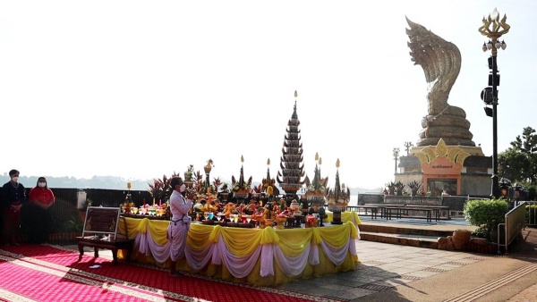 ซึ่งหลังจากบวงสรวงองค์พญาศรีสัตตนาคราชแล้ว คณะผู้ว่าราชการจังหวัดนครพนม ได้กราบไหว้ศาลเจ้าพ่อคำแดง ผู้ปกปักดูแลลูกหลานตามริมแม่น้ำโขง,พระติ้ว พระเทียม วัดโอกาสศรีบัวบาน,ศาลเจ้าพ่อหมื่น,ศาลปู่-ย่า,รูปเหมือนหลวงปู่จันทร์เกจิอาจารย์ชื่อดัง และ หลวงพ่อพระแสง วัดศรีเทพประดิษฐาราม ซึ่งเป็นพระพุทธรูปที่สร้างในยุคเดียวกับหลวงพ่อพระใส จังหวัดหนองคาย และศาลเจ้าพ่อสัมมาติ ถือว่าการกราบไหว้สิ่งศักดิ์สิทธิ์ตามคติความเชื่อของชาวจังหวัดนครพนมครบสมบูรณ์ โดยในวันจันทร์ที่ 4 ตุลาคม ก็จะประชุมร่วมกับคณะกรรมการโรคติดต่อจังหวัดนครพนม ถึงสถานการณ์การแพร่ระบาดโรคโควิด รวมทั้งวาระการประชุมในเรื่องอื่นๆ ณ ห้องประชุมพระธาตุพนม ชั้น 5 ศาลากลางจังหวัดนครพนม