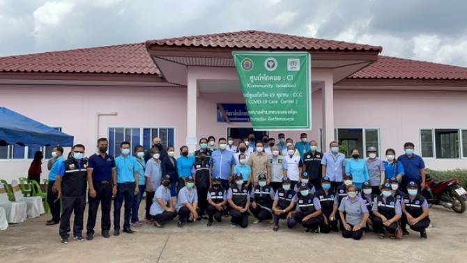 หนองคายมอบชุดพีพีอี-เตียงกระดาษช่วยศูนย์พักคอย