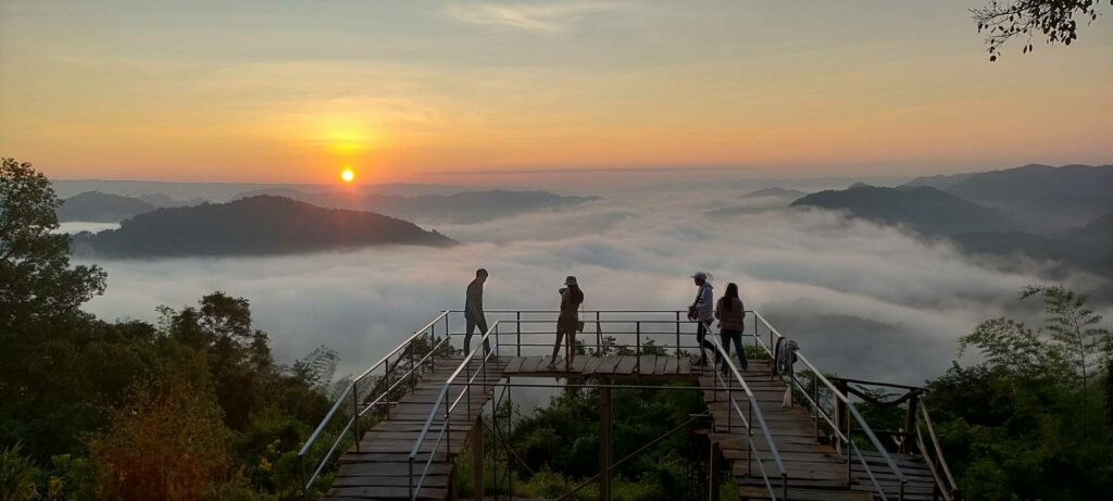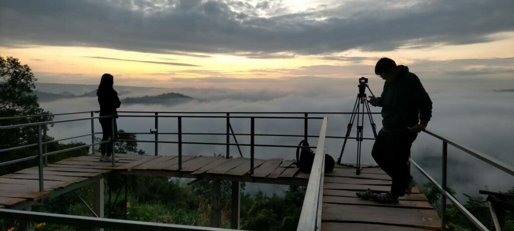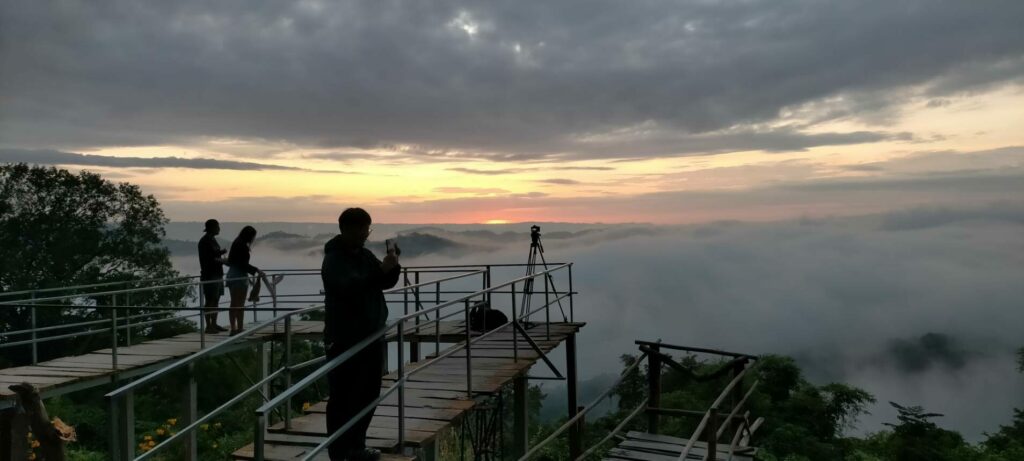 วันนี้ (15 พ.ย. 65) บรรยากาศการท่องเที่ยวที่ อำเภอสังคม จังหวัดหนองคาย แม้ไม่ใช่ช่วงวันหยุดยาว หรือวันหยุดหยุดเสาร์-อาทิตย์ ยังมีความคึกคักตั้งแต่เช้า โดยมีนักท่องเที่ยวเดินทางมาชมทะเลหมอก เหนือลำแม่น้ำโขงสองฝั่งไทย-ลาวกัน แม้จะไม่มากเหมือนเช่นวันหยุดยาวหรือวันหยุดเสาร์-อาทิตย์ แต่ก็มีมาเรื่อย ๆ เนื่องจากนักท่องเที่ยวบางส่วนชอบความเป็นส่วนตัว และทราบว่าทะเลหมอกเกิดหนาแน่น สวยงามในช่วงนี้ จึงเลือกที่จะเดินทางมาในวันธรรมดาเพื่อชมความงามทะเลหมอก ซึ่งจุดที่สามารถชมทะเลหมอกได้อย่างสวยงาม ในเขตตำบลบ้านม่วง อำเภอสังคม มีหลายจุด ทั้งที่ภูห้วยอีสัน, ภูหนอง และภูผาดัก อุณหภูมิต่ำสุดบนภูสูงอยู่ที่ 17-18 องศาเซลเซียส ที่นักท่องเที่ยวให้ความสนใจที่สุดก็ยังคงเป็นที่ภูห้วยอีสันและภูหนอง ที่อยู่ใกล้กัน