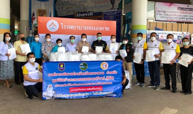 เมื่อเวลา 13.30 น. วันที่ 6 ส.ค.64 ที่โรงพยาบาลหนองคาย นายยุทธนา ศรีตะบุตร นายก อบจ.หนองคาย, นายอุรุยศ เอียสกุล นายกเทศมนตรีเมืองหนองคาย, นายธัชชัย วรวิริยะประเสริฐ ตัวแทนมูลนิธิสว่างคงคาธรรมสถาน วีอาร์กู้ภัยหนองคาย, นางมนนิภา โกวิทศิริกุล ประธานหอการค้าจังหวัดหนองคาย ได้ร่วมกันมอบชุดพีพีอี 500 ชุด, ซีพีอี 1,500 ชุด, เครื่องช่วยหายใจ 1 ชุด แก่นายแพทย์วิเชียร รุ่งธิติธรรม ผู้อำนวยการโรงพยาบาลหนองคาย จัดสรรให้เจ้าหน้าที่บุคลากรทางการแพทย์ได้ใช้ในการปฏิบัติหน้าที่ดูแลผู้ป่วยโรคโควิด 19 ซึ่ง อบจ.หนองคาย ได้ทำการจัดสรรชุดพีพีอี มอบให้กับโรงพยาบาล 9 อำเภอในจังหวัดหนองคาย รวม 2,500 ชุด พร้อมอุปกรณ์ที่จำเป็นสำหรับการปฏิบัติหน้าที่ รวมถึงการดูแลโรงพยาบาลสนามทั้งสามแห่งของจังหวัดหนองคายด้วย