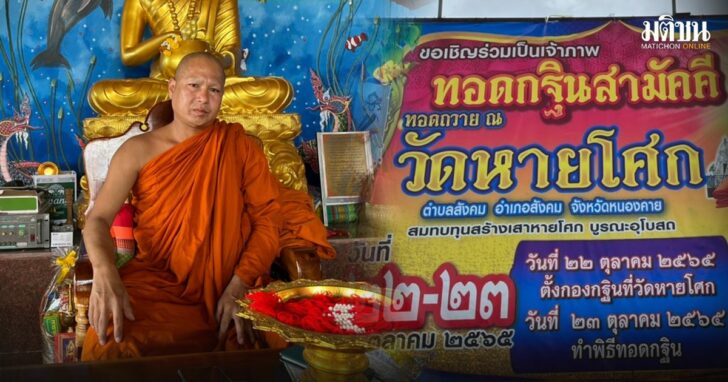 เมื่อวันที่ 26 ตุลาคม ผู้สื่อข่าวลงพื้นที่วัดหายโศก ต.สังคม อ.สังคม จ.หนองคาย หลังจากทราบข้อมูลว่าวัดได้ถูกมิจฉาชีพหลอกเป็นเจ้าภาพทอดกฐินสามัคคีแต่ไม่มาตามที่แจ้ง ทำให้วัดเสียหาย เกิดข้อครหาในสังคมเป็นอย่างมาก โดยผู้สื่อข่าวได้พบกับพระมหาชัชชวาลย์ ยติโก เลขาฯเจ้าคณะตำบลสังคมเขต 2 และได้ให้ข้อมูลว่า ทางวัดได้กำหนดจัดงานทอดกฐินสามัคคี เพื่อสมทบทุนสร้างเสาหายโศก บูรณะอุโบสถ ระหว่างวันที่ 22-23 ต.ค. และทอดถวายในวันที่ 23 ต.ค. โดยได้มีการประชาสัมพันธ์ผ่านทางสื่อช่องทางต่างๆ โดยเฉพาะทางเพจเฟซบุ๊กของทางวัด