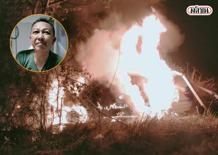หนองคาย รถเก๋งเสียหลักชนเสาไฟฟ้าไฟลุกท่วมรอดตายปาฏิหาริย์