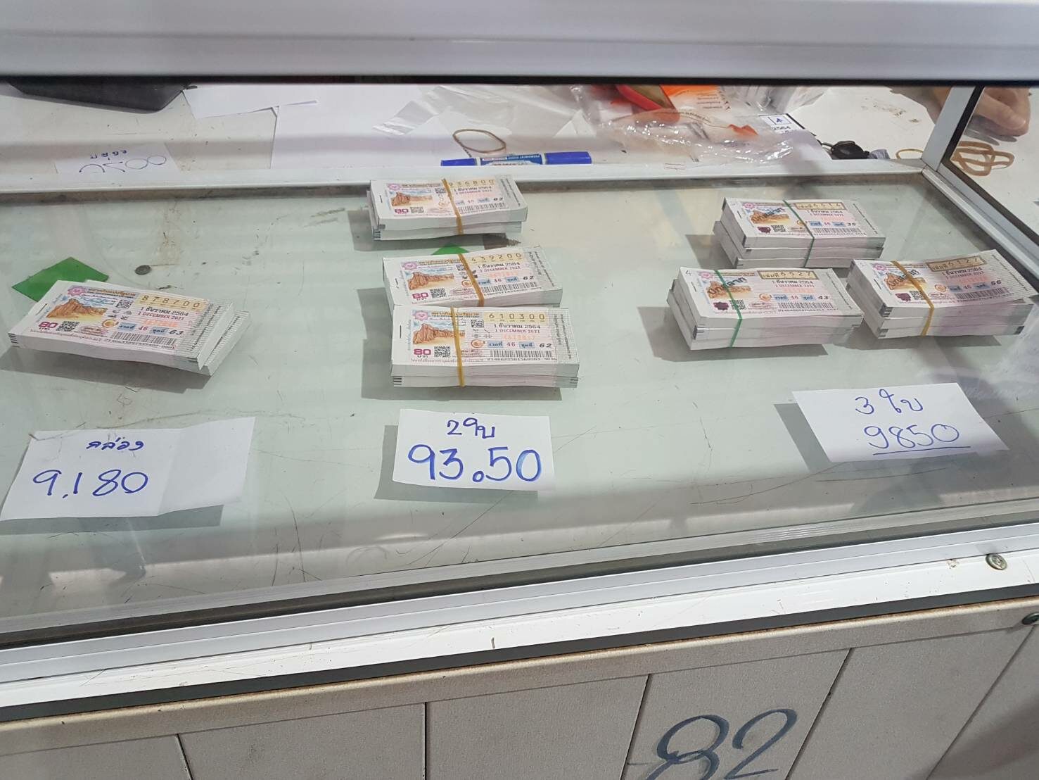 สำหรับราคาซื้อขายกันในงวดนี้ ผู้ค้าสลากรายย่อยต่างบ่นอุบ เนื่องจากราคาลอตเตอรี่ราคาแพงกว่าทุกงวดที่ผ่านมา ราคาลอตเตอรี่ 1 ใบ ราคาต้นทุน ใบละ 92.50 บาท หวยชุด 2-3 ตกใบละ 98 บาท หวยชุด 4 ใบ ราคา 108 บาท ส่วนหวยชุด 5 ใบ ราคาพุ่งถึง 113 บาท