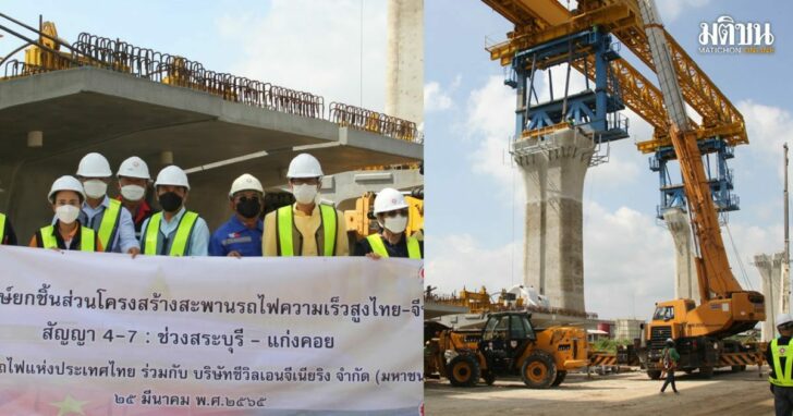 โครงการก่อสร้างรถไฟความเร็วสูง กรุงเทพ-หนองคาย ช่วง สระบุรี-แก่งคอย ปฐมฤกษ์ยกชิ้นส่วนโครงสร้างขึ้นประกอบ